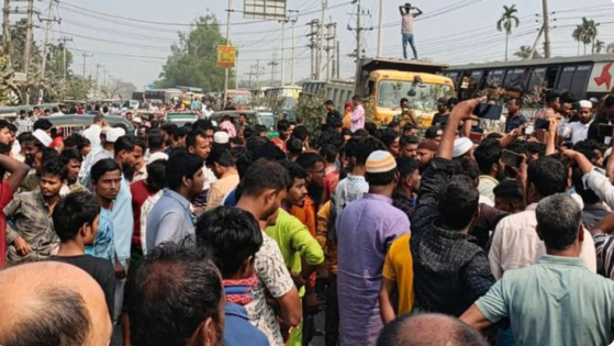 রোববার (২২ ফেব্রুয়ারি) দুপুরে ত্রিশাল উপজেলার একটি ফিলিং স্টেশন এলাকায় ঢাকা-ময়মনসিংহ মহাসড়কে এ কর্মসূচি পালন করেন তারা।